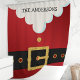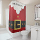 Celebrate the festive season with this playful Santa suit shower curtain, featuring a customizable family name monogram. The design mimics Santa's classic suit, complete with a glittery belt buckle and white fur trim, adding a whimsical and joyful touch to your bathroom decor. Made from high-quality fabric, this curtain ensures durability and easy maintenance, perfect for spreading holiday cheer in your home.