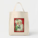 Santa Talking on Telephone Canvas Christmas Tote Bag