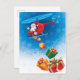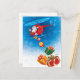 Send your warm wishes to your family and friends with this funny merry Christmas postcard featuring Santa throwing gifts from a helicopter.
