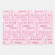 Personalize this modern typography Christmas wrapping paper sheet assortment featuring Santa, your child's name and a trendy pink colour scheme. Adding your kid's name to this simple word collage design is easy using the separate text templates which fills your word of choice into the three different designs on the pink background of each sheet of gift wrap. Sheet One is a modern Christmas design with Santa Claus, North Pole, Sleigh, Elf and Ho Ho Ho in two shades of pink and white and simple block fonts surrounding your child's name. Sheet Two is the same basic design slightly offset, this time in white lettering on a deep berry pink background and uses a separate text template in case you are customizing for more than one child or family member. Sheet Three is a linear word design of your name, Santa Claus and North Pole along with decorative squares and rectangles in white on a background of pastel pink. Create your own custom Christmas gift wrap with a modern twist on Santa with this personalized typography design in trendy pink, printed just for you, for a chic designer look under your Christmas tree.