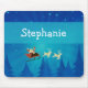 Cute and whimsical Santa Winter Scene Christmas Mousepad featuring Santa Claus and his reindeer passing through a wintry blue forest on a starry night. This fun Christmas mousepad will add holiday flair to your workspace! Easy to customize, simply add the personalized text of your choosing to this design. Click on the "Customize It" button to find more personalization options.