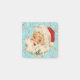 Sweet Vintage Santa design of a Jolly Santa Claus against a turquoise background with peppermints and candy canes.
