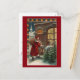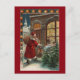 Santa and his bag of gifts have arrived in the middle of the Christmas celebration. The well-lit window shows the beautiful, sparkling tree and the happy family. This antique Christmas postcard is not frequently seen and delights with its vivid colours and nostalgic, old-fashion imagery. Deliver your holiday message with this festive illustration. It is perfect for cards, invitations, postcards, décor and any holiday gift.