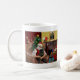 Santa at home with his black Pug, relaxing in front of the fire before the big night. Notice Mona Lisa over the mantle holding the same dog.