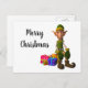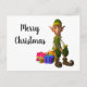 Santa's elf taking a break after wrapping gifts. Customize by changing background colour.