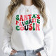 This T-Shirt features a Santa's Favourite Cousin in Groovy Christmas white T-Shirt design for family Cousin.
