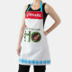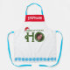 Funny Santa's Favourite Ho Personalized Photo Apron, Cute Funny Santa's Hat, Personalize Name, Custom photo Christmas Chef Apron. Funny Christmas aprons. Customizable White Custom name photo apron with blue snowflakes border.