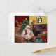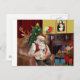 Santa at home with his fawn French Bulldog, relaxing in front of the fire before the big day. Notice Mona Lisa over the mantle holding the same dog.