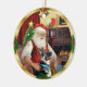 Santa relaxes in front of a cozy fire with his German Shepherd before the big night.