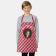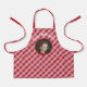 Santa's Little Baker is a cute christmas apron for kids in a chequered gingham fabric in red and pink. Including a custom photo, original photo by Marina Abrosimova on Unsplash. Replace with your own!
