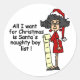 Funny holiday T-shirts, mugs, cards, stickers, buttons, bags, keychains, ornaments, and more sure to make anyone laugh features a female in a Santa hat and red dress with a long list saying "All I want for Christmas is Santa's naughty boy list!".