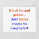 It's all funn and games until Santa checks his naughty list. Humorous Christmas design warning all the bad little boys and girls of Santa's naughty list!