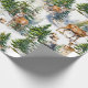 A watercolor-painted holiday wrapping paper featuring a red fox family foraging through the forest in a repeat pattern on white.