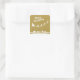 This golden Christmas square sticker features the silhouette of Santa Claus with his sleigh and reindeers, flying above the houses in a trail of stars.
