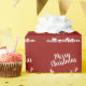 This festive red Christmas wrapping paper features the silhouette of Santa's sleigh with his reindeers, flying above the houses in a trail of stars.