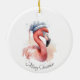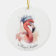 Santa's Snowbird Flamingo, custom Ceramic Ornament