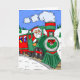 Cute illustration of Santa as the engineer of his Christmas train. Bright fun colours.