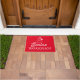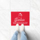 Santa's Workshop custom red door mat. Trendy Holiday decorations for home or business.