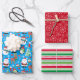 These festive, modern, adorable Christmas papers are so fun! Santas, Rudolphs, penguins, and snowmen on blue, red and white retro snowflakes, and green red and white polka dot stripes are sure to make your gifts look fabulous. Get enough to wrap all your Christmas gifts.