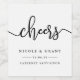 Offrez à vos invités mariages une bouteille de vin et joignez nos étiquettes personnalisés chic pour une touche spéciale ! Étiquette blanc éclat "cheers" en noir manuscrit typographie de style manuscrit avec vos noms, date mariage et vin variétal ou message personnalisé en dessous.