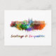 Santiago de Compostela skyline in watercolor splatters with clipping path