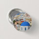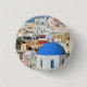 The buildings of stunning Santorini, blue domed church in the foreground with apartments in the background.