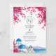 Capture the magic of the Mediterranean with this romantic Santorini-inspired wedding design. Featuring vibrant pink bougainvillea, iconic blue-domed churches, and a dreamy seaside sunset, this elegant design is perfect for couples seeking a destination-inspired wedding theme. Personalize with your names, wedding date, and venue for a unique keepsake your guests will cherish.