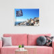Canvas with image of Santorini medieval city and Greek flag, in Cyclades Islands, Greece