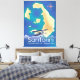 Santorini Cyclades islands ,Aegean Sea map travel poster art print.