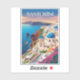 Santorini retro vector travel design. Santorini, the jewel of the Cyclades, is world-renowned for its dramatic caldera views, whitewashed cliffside villages, and unforgettable sunsets.