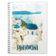 Beautiful retro vintage Santorini Greece Watercolor Spiral Photo Notebook showing the famous greek island and houses with a blue roof. Great gift idea and souvenir for your family and relatives and anybody who like to travel to Greece.