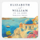 Santorini Greece Watercolor Skyline Wedding Square Sticker