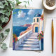Santorini Greece Watercolor Travel Postcard