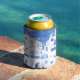 Santorini Greek Island Watercolor Townscape Can Cooler