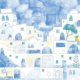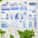 A blue and white watercolor painting of the village of Oia on the peaceful Greek island of Santorini. Original art by Nic Squirrell.