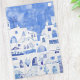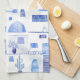 Santorini Greek Island Watercolor Townscape Kitchen Towel