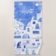 Santorini Oia Greek Island Watercolor Personalized Beach Towel