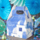 A modern blue and white watercolor painting of Oia on the stunning Greek island of Santorini. Original art by Nic Squirrell. Change the Thank You text to customize.