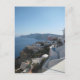 Looking out into the blue ocean and crowded neighbourhoods of Oia on the island of Santorini in Greece.