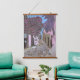 The polyester fabric displayed many wrinkles and several sharp creases throughout. At the bottom of the tapestry, I noticed a bulge in the fabric because it was not pulled tight enough before being connected to the wooden boards. It took me over an hour to spay water on the tapestry before putting it on an ironing board where I used a warm iron over a polyester cloth to remove the wrinkles and creases in the material. I was able to get out the wrinkles and creases that made that tapestry look as beautiful as its picture.