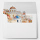 Destination wedding envelopes with a surprise colourful watercolor landscape painting inside.
