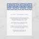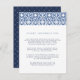 Designed to coordinate with our Santorini wedding collection in Lapis, this elegant Mediterranean guest information card features navy blue lettering accented with a geometric tile patterned top border in crisp lapis blue. Replace the sample text with the key details of your wedding celebration.