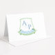 This elegant wedding thank you card design features a watercolor green blue and white botanical wedding crest made up entirely of elements hand painted by me (you won't find this design anywhere else). Please note you can change the contrast colour of the Greek Key pattern on the reverse by changing the background colour of that layer.