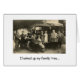 A vintage photograph of a very unusual group of people posing around an old automobile. People of all sizes and shapes. They could be circus side show performers...or they could be your family! The front of the card says, "I looked up my family tree..." and inside the card, "...and found out I was the sap!"