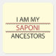 Show your Indigenous pride with this "I Am My Ancestors: Saponi" square sticker with red and black text by Chained Dolls.