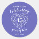 Sapphire celebrating 45 years of love anniversary stickers. Simple outline heart stone effect line art graphics blue and white 45th Sapphire Wedding Anniversary round stickers. Customize with your own forty fifth wedding anniversary party details. 45th Anniversary is traditionally associated with sapphire and the heart symbolizes love. Graphics and design by Sarah Trett for www.mylittleedenweddings.com on zazzle.