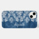 Sapphire Blue Moody Damask Pattern and Name Case-Mate iPhone Case