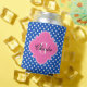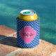 Sapphire Blue Wht Dots Hot Pink Quat Name Initial Can Cooler