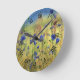 Vivid blue chicory and cornflowers bloom in a golden field of grass under a pale blue sky. The blond and green background is also interrupted by the sparkling pink of muhly grass flowers.