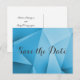 Sharp and modern Jewel Tones Wedding Save the Date Postcard featuring a blue funky geometric triangle background. This chic and simple design is a unique choice for announcing a modern wedding. Easy to customize with your wedding details. Click "Customize It" to find more personalization options.